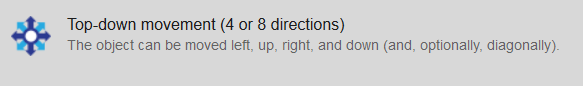 The "Top-Down Movement" behavior allows the additional functionality of moving an object in either 4 or 8 directions.